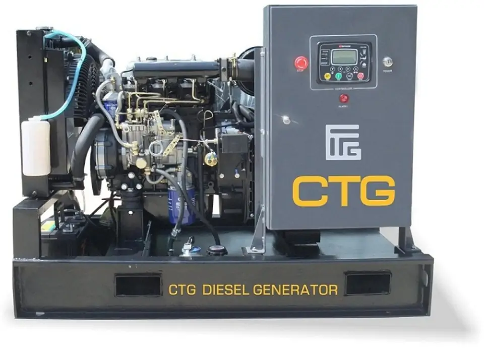 ДГУ CTG AD-24RE-M оснащен дизельным двигателем внутреннего сгорания Ricardo N4100DS с водяным принудительным охлаждением. Двигатель имеет мощность 22 кВт в постоянном режиме и 24 кВт в аварийном режиме. Генераторная установка смонтирована на прочной раме и имеет компактные размеры, что облегчает ее установку и транспортировку.